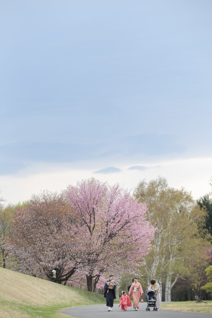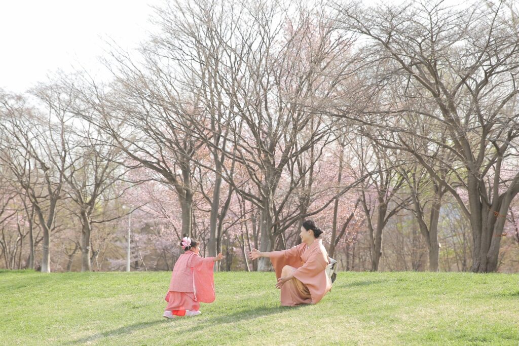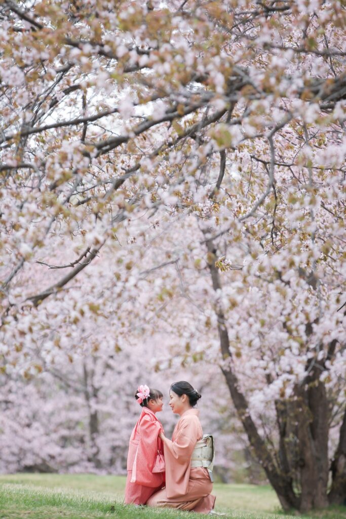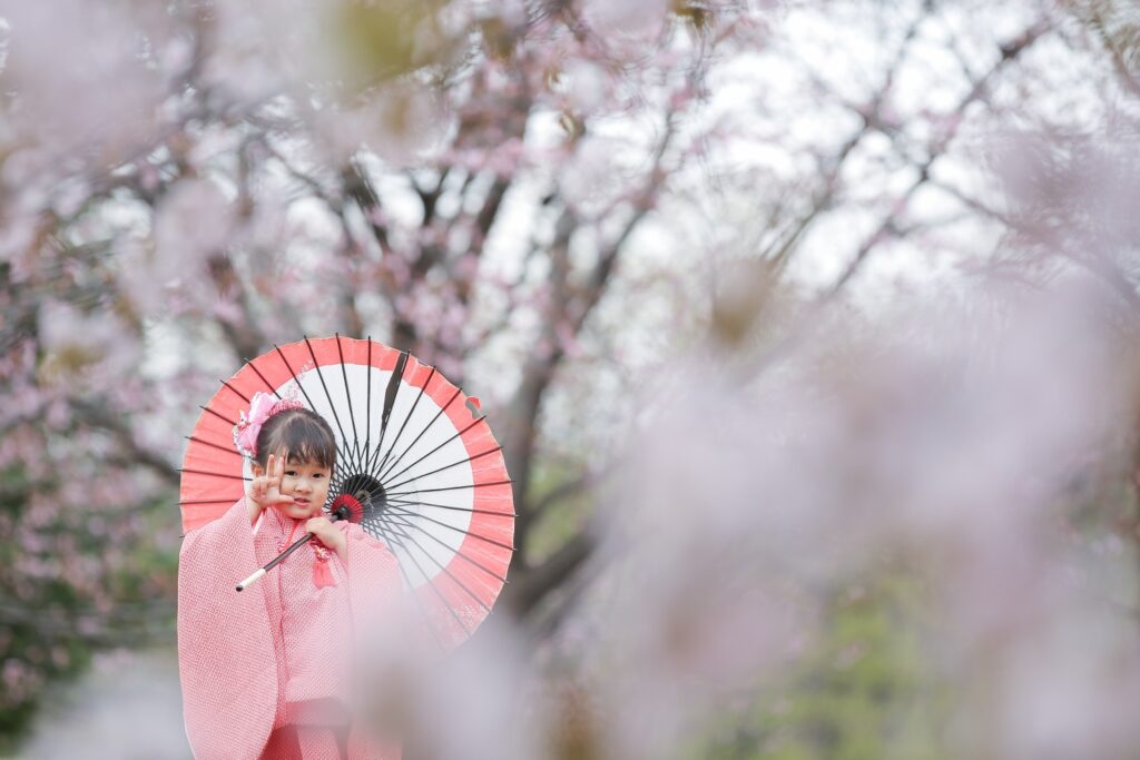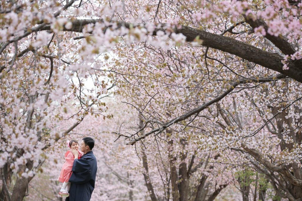 桜の時期の七五三